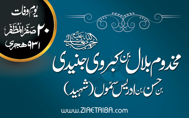 مخدوم بلال بن کبروی جنیدی رحمۃ اللہ تعالیٰ علیہ بن حسن بن ادریس سموں (شہید)۔۔۔