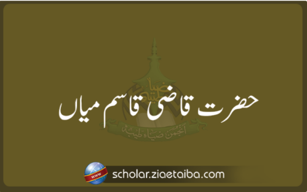 مولانا قاضی قاسم میاں (کاٹھیاواڑ، انڈیا) خلیفہ اعلی حضرت جناب مولانا قاضی قاسم میاں صاحب ؛ آپ کو اعلیٰ حضرت امام اہل سنت امام احمد رضا خاں قادری نےاجازت و خلافت عطاء فرمائی تھی۔ امام اہل سنت نے جو خلافت و اجازت کا اشتہار شائع فرمایا تھا اس میں جناب مولانا قاضی قاسم میاں کا ذکر بایں الفاظ موجود ہے: ’’جناب قاضی قاسم میاں صاحب، پور بندرکاٹھیاواڑ، حامی سنت، مجاز طریقت‘‘۔ (تذکرہ خلفائےاعلیٰ حضرت، ص12) آپکےمزید حالات معلوم نہیں ہوسکے۔ احباب اہل سنت سے گزارش ہے کہ جن کے پاس آپ کی معلومات ہوں وہ افادۂ عام کےلئے ’’ضیاءِ طیبہ‘‘کے ای میل ایڈریس ( info@ziaetaiba.com) پر بھیج کر اس کا ر خیر میں تعاون فرمائیں۔ ہم ان شاء اللہ تعالیٰ اس کو ویب سائٹ پر (Upload) کردیں گے۔۔۔۔