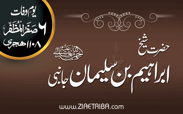 حضرت شیخ ابراہیم بن سلیمان جانبی رحمۃ اللہ تعالیٰ علیہ ابراہیم بن سلیمان بن محمد بن عبد العزیزی جینینی نزیل دمشق: فقیہ نحریر،فاضل بے نظیر،مفنن،مؤرخ،حافظ،وقائع،واقف عوامض نقول،جامع فروع،حاوئ اصول تھے،حدود ۱۰۴۰ھ میں شہر جنین میں جو شام کے ملک میں واقع ہے پیدا ہوئے اور رملہ کو تشریف لے گئے جہاں خیر الدین مفتی حنفی سے تفقہ کیا اور مدت تک ان کی ملازمت میں رہ کر مسائل فقہیہ کے کاتب رہے چنانچہ جب وہ فوت ہوئے تو ان کا فتاویٰ مشہورہ مرتب کیا غرض بعد وفات شیخ مذکور کے دمشو میں آئے اور وہاں وطن اختیار کیا اور کئی کتابیں اپنے ہاتھ سے لکھیں۔مصر میں بھی جاکر وہاں کے مشائخ اجلہ سے اخذ کیا۔آپ کو اسماء کت اور ان کے مؤلفین اور اسماء والقاب اور تاریخ وفات وانساب واستحضار فروع فقہیر اور علل حدیثیہ میں معرفت تامہ حاصل تھی،تاریخ[1] ابن حزم کو کامل کیا اور بعض رسائل تاریخیہ تالیف کیے یہاں تک کہ دمشق میں منگل ک۔۔۔