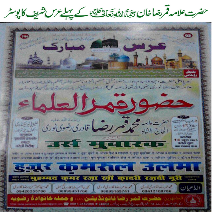 حضرت قمر رضا خان کے پہلے عرس شریف کاپوسٹر