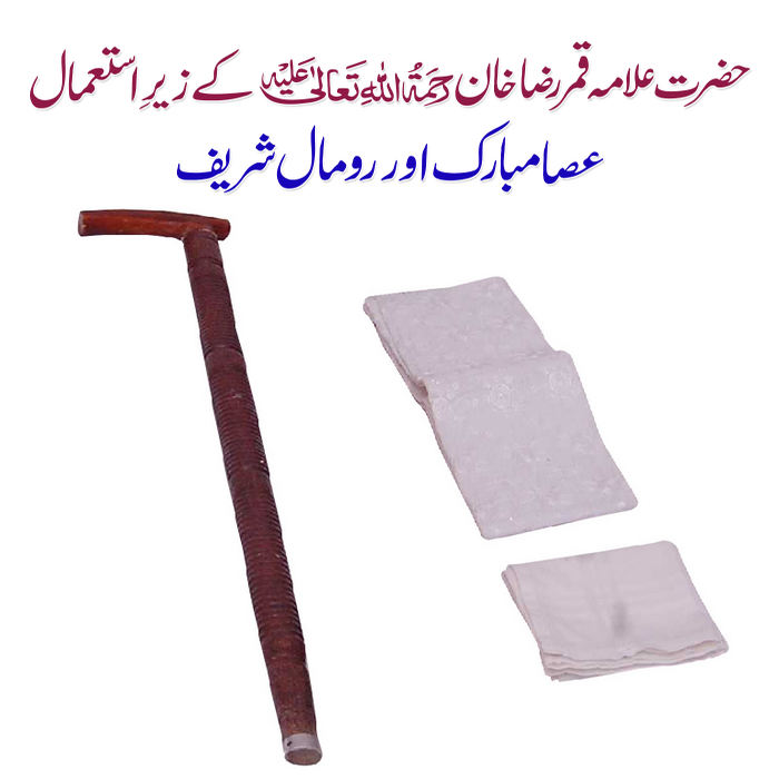 حضرت علامہ قمر رضا خان کے زیرِ استعمال عصا مبارک اور رومال شریف