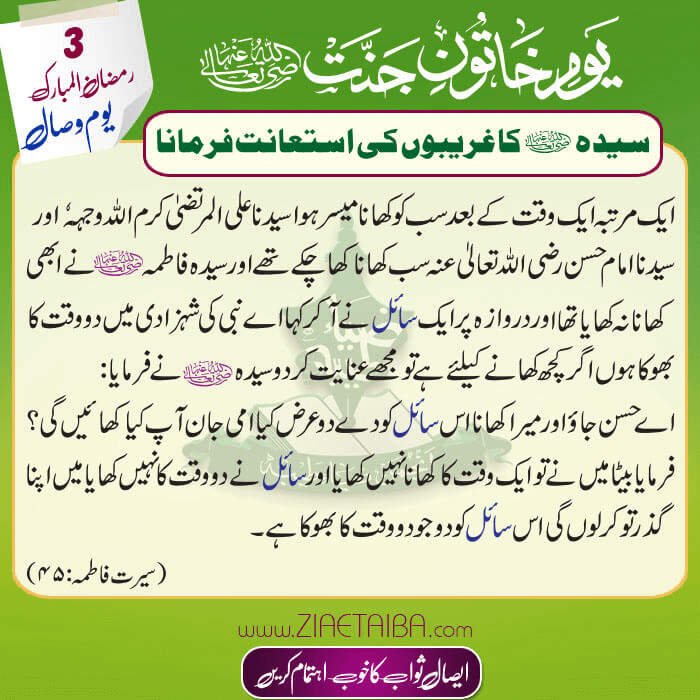 سیدہ رضی اللہ تعالیٰ عنہ کا غریبوں کی استعانت فرمانا
