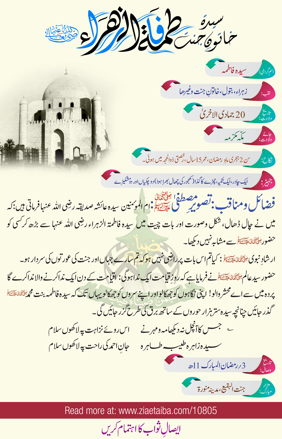 سیدہ خاتون جنت فاطمہ زہرا کا تعارف