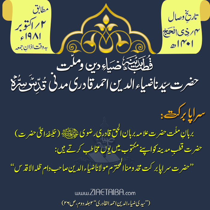 قطبِ مدینہ ضیاء الدین مدنی رحمۃ اللہ علیہ