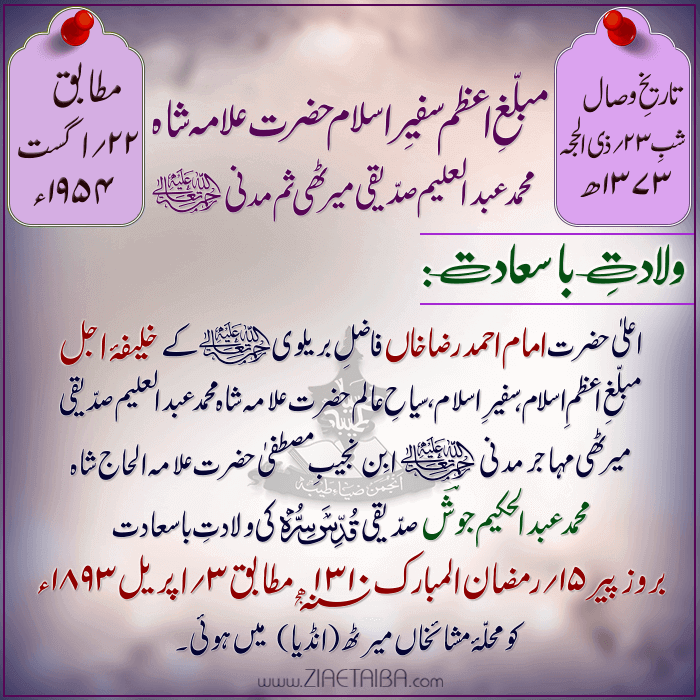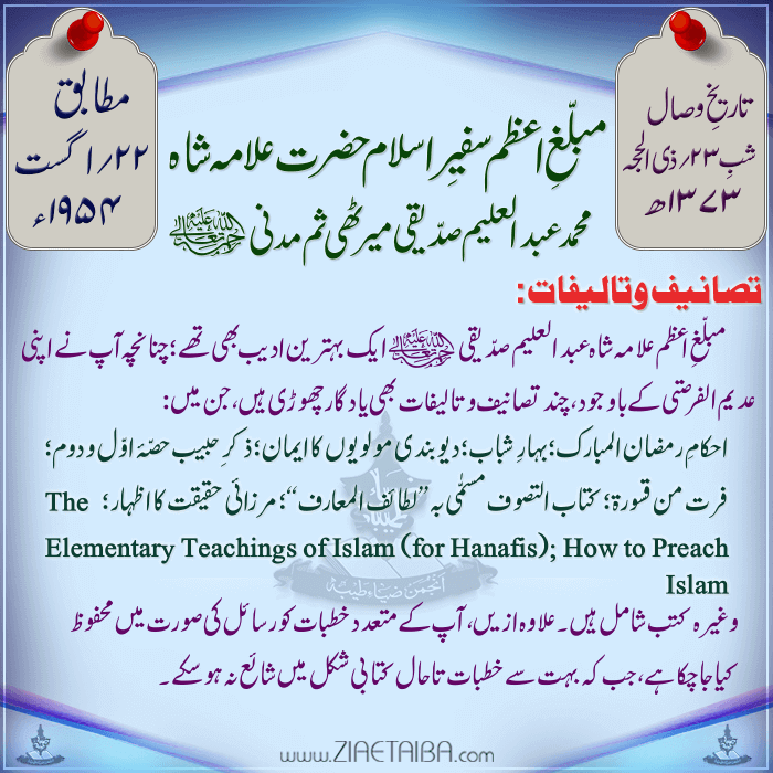 حضرت علامہ شاہ محمد عبدالعلیم صدیقی میرٹھی مدنی کا ۶۳ واں عرس مبارک