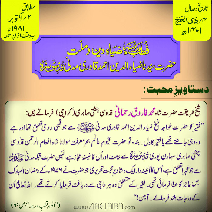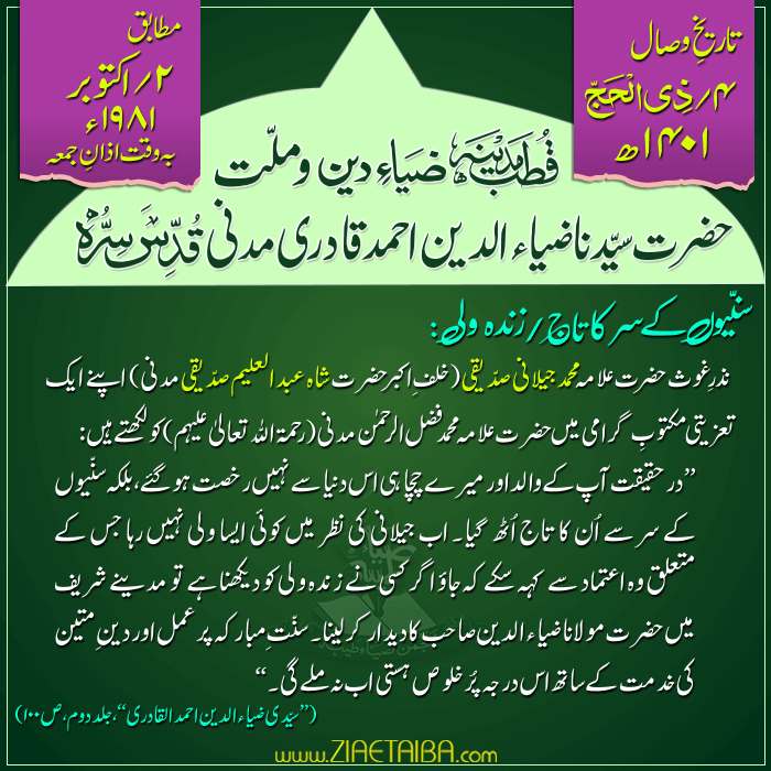 قطبِ مدینہ ضیاء الدین مدنی رحمۃ اللہ علیہ