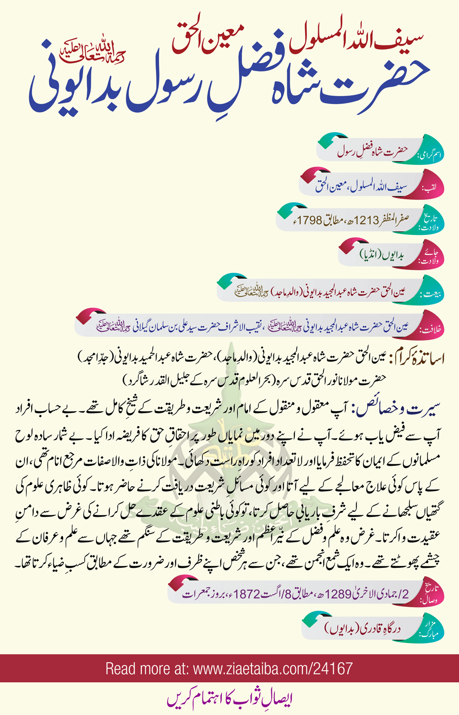 حضرت شاہ فضل رسول بدایونی کا تعارف