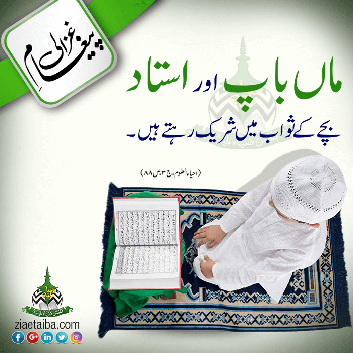 ماں باپ اور استاد بچے کے ثواب میں شریک رہتے ہیں