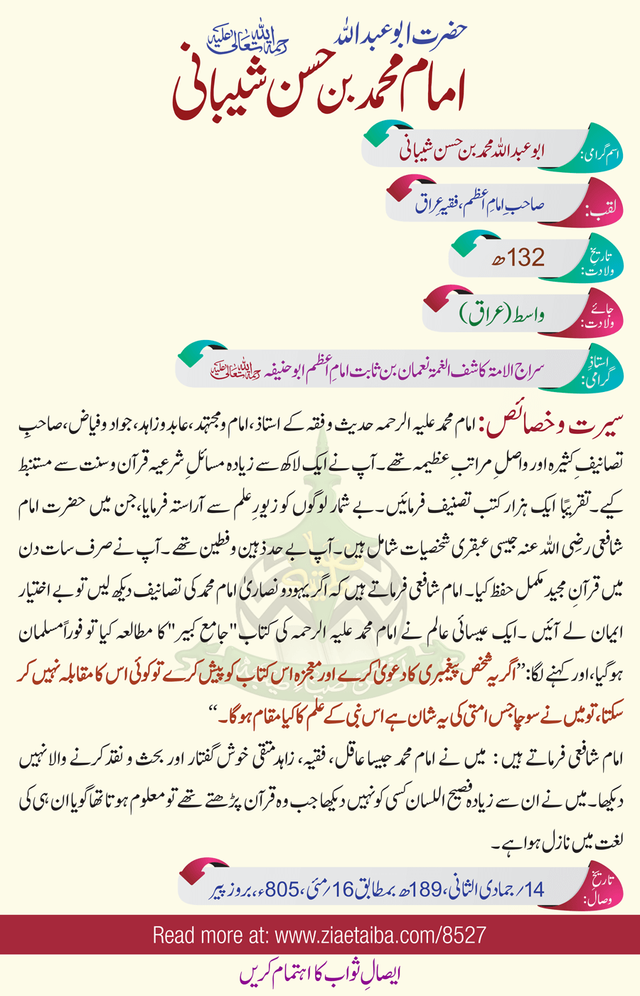 حضرت امام محمد بن حسن شیبانی کا تعارف