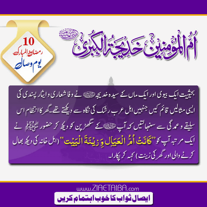 ام المومنین خدیجۃ الکبری رضی اللہ تعالیٰ عنہا