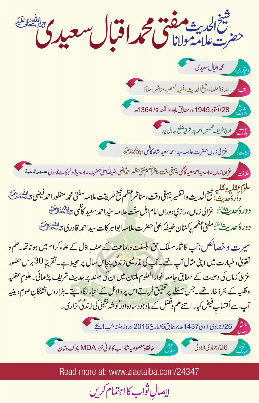حضرت مولانا متی اقبال سعیدی کا تعارف