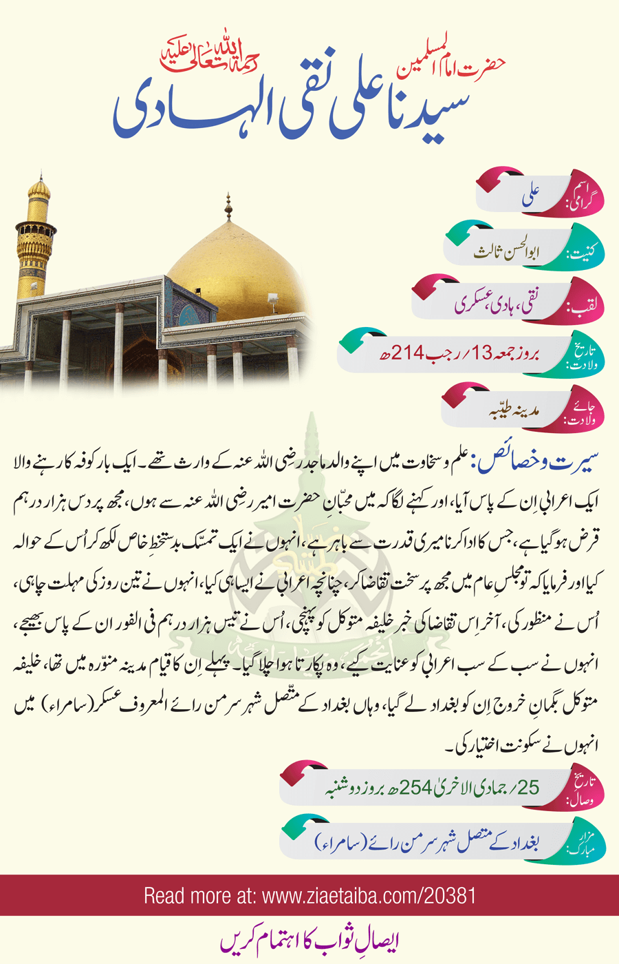 حضرت سیدنا علی نقی الہادی کا تعارف