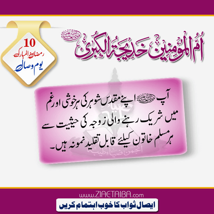 ام المومنین خدیجۃ الکبری رضی اللہ تعالیٰ عنہا