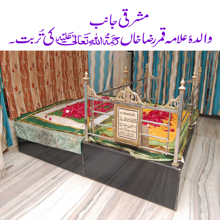 مشرقی جانب علامہ رضا خان بریلوی کی والدہ کی تُربت ہے۔