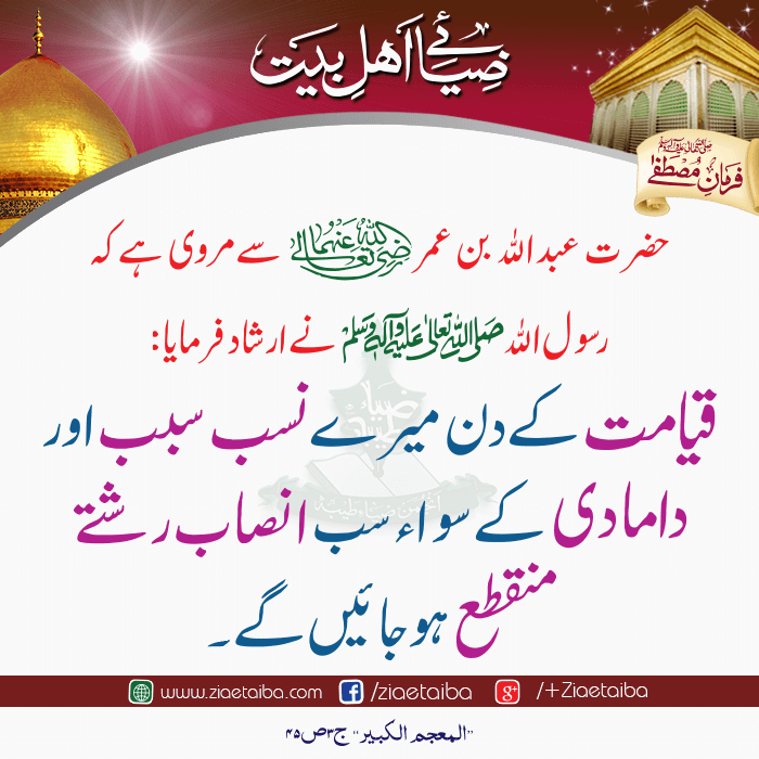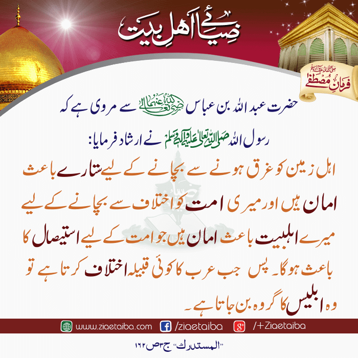 اھلبیت سے متعلق حدیثِ پاک