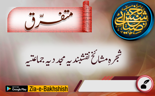 شجرہ شریفمشائخ نقشبندیہ مجددیہ جماعتیہ رحمۃ اللہ علیہم اجمعین یا الٰہی! خیر کر خیرلوریٰ کے واسطےاور پیارے یارِ غارِ حرا کے واسطے شیخ سلمان اور خواجہ قاسم پارساجعفر صادق رئیسِ اصفیا کے واسطےبایزید برگزیدہ بوالحسن شیخِ بزرگبو علی فارمدی مردِ خدا کے واسطےیوسفِ ہمدان و عبدالخالق اہل غجدوانریوگر کے خواجہ عارف پرصفا کے واسطےخواجہ محمود فغنوی اور علی رامتینیحضرت بابا سماسی مقتدا کے واسطےسید میر کلال اور صدرِ بزم نقشبندشاہ بہاء الدین سراپا اتقا کے واسطےخواجگان عطار و یعقوب و عبیداللہ غنیزاہد و درویشِ محمد اولیاء کے واسطےخواجہ امکنگی و حضرت باقی باللہ مردِ حقاحمد سرہند مجدد باخدا کے واسطےخواجہ معصوم اور ابوالقاسم محمد نقشبندشاہ زبیر و خواجہ اشرف اتقیا کے واسطےشاہ جمال اللہ شاہِ عیسیٰ محمد باوفاخواجہ فیض اللہ غلام مجتبےٰ کے واسطےخواجہ نور محمد و فقیر مصطفےٰحضرت شاہِ جماعت خوش ادا کے واسطےصورت و سی۔۔۔