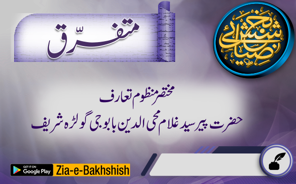 حضرت پیر سید غلام محی الدین بابوجی گولڑہ شریف علیہ الرحمۃ اس مملکت کا مردِ مسلماں چلا گیاروتا ہوں میں کہ پیکر ایماں چلا گیا بے دست وپا تھے سربازار لٹ گئےناموسِ مصطفیٰ کا نگہباں چلا گیا اے مرگِ ناگہاں تِرا شکوےٰ کریں تو کیاجائیں کہاں کہ درد کا درماں چلا گیا رویا کروں گا اُں کی جدائی میں روز و شبمیرے لیے تو منبع عرفاں چلا گیا اُن کا وجود آیۂ ربِّ و دود تھامیر اُمم کے عشق کا عنواں چلا گیا یہ سوچتا ہوں اُں سے اب ملاقات کہاںرختِ سفر لپیٹ کے سلطاں چلا گیا دینِ ہدیٰ کی جوت جگائی تمام عمرطاعت گزارِ خواجہ گیہاں چلا گیا ا ُس کی نظیر کرۂ ارضی پہ اب کہاںابھرا، اُبھر کے نیّر تاباں چلا گیا دیکھے ہیں میں نےاُس کی لحد پر ملائکہخلدِ بریں میں یوسفِ کنعاں چلا گیا ۔۔۔