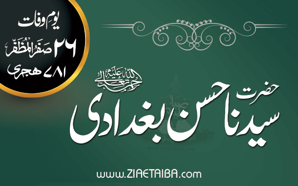 حضرت میر سید حسن بغدادی نام ونسب: اسم گرامی: حضرت میر سید حسن بغدادی۔ لقب: شیخ الوقت۔ والد کا اسم گرامی: عارفِ کامل حضرت میر سید موسیٰ۔خاندان سادات سےنسبی تعلق تھا۔علم و فضل تقویٰ و طہارت میں بےمثال تھے۔ ولادت باسعادت: آپ کی ولادت بغداد معلی میں ہوئی۔ تحصیلِ علم: تمام علوم عقلیہ و نقلیہ کی تحصیل و تکمیل اپنے والد گرامی کے زیرسایہ ہوئی۔ آپ اپنے وقت کےعالم متبحر اور عارف کامل تھے۔ بیعت وخلافت: والد گرامی سےتحصیل علم کےبعد سلوک کی منازل طے فرمائیں، اور پھر انہیں کے دستِ حق پرست پر سلسلہ عالیہ قادریہ میں بیعت ہوئے، اور خلافت سے مشرف ہوئے۔ سیرت وخصائص: سردار اولیاء، مشاہیر عصر، شیخ الوقت واقف رموز حقائق، دانندۂ اسرار دقائق، حضرت الشیخ میر سید حسن قادری بغدادی آپ سلسلہ عالیہ قادریہ رضویہ کے تئیسویں(23) امام وشیخ طریقت ہیں آپ عبادت وریاضت میں جملہ معاصرین سے فائق تھے ۔۔۔