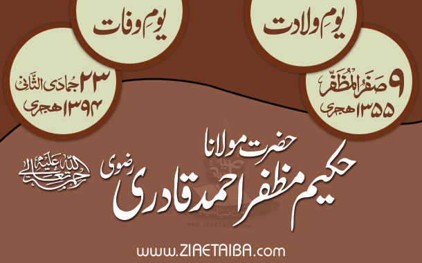 حضرت مولانا حکیم مظفر احمد قادری رضوی رحمۃ اللہ تعالیٰ علیہ ولادت حضرت مولانا حکیم مظفر احمد رضوی بن صوفی منور حسین بن حفظ الرحمٰن بن الٰہی بخش صدیقی یکم مئی ۱۹۳۶ء کو اپنے وطن داتا گنج ضلع بدایوں شریف میں پیدا ہوئے۔ حکیم مظفر احمد کے والد ماجد بڑے پار سابزرگ تھے پنجوقتہ نمازی، جماعت سے نماز ادا فرماتے۔ صوفی منور حسین رحمہ اللہ علیہ داتا گنج میں ۹۰سال کی عمر شریف میں بروز جمعہ دن کے سو ا نو بجے ۲۳؍جمادی الآخر ۱۳۹۴ھ کو وصال فرماگئے۔ تعلیم وتربیت مولانا حکیم مظفر احمد نے قرآن، حدیث، تفسیر، منطق وغیرہ کی تعلیم مدرسہ محمدیہ، مدرسہ عالیہ قادریہ بدایوں،د ارالعلوم منظرِ اسلام بریلی سے حاصل کی، اور سندِ فراغت وفضیلت ۱۹۵۲ء میں منظرِ اسلام، مدرسہ عالیہ قادریہ بدایوں سے حاصل کی۔ حکیم مظفر احمد نے الٰہ آباد بورڈ سے مولوی، عالم وغیرہ کے امتحانات بھی پاس کیے اور علمِ طب بھی پڑھا، تجربہ کار حکیم ہیں۔ بیع۔۔۔